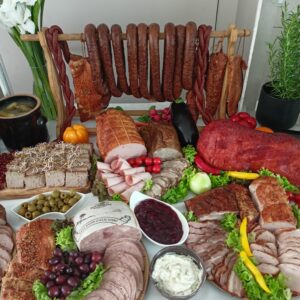 Oferujemy Państwu kompleksowe zaopatrzenie w tradycyjne, staropolskie wędliny na Wiejski Stół. 25 lat doświadczenia w produkcji wędlin pozwoliło nam na wyselekcjonowanie naszych najlepszych produktów, które przygotowywane są według tradycyjnych receptur, z dodatkiem naturalnych przypraw, bez barwników i konserwantów. Nasze wędliny pieczemy tradycyjnie oraz wędzimy drewnem olchowo-bukowym.